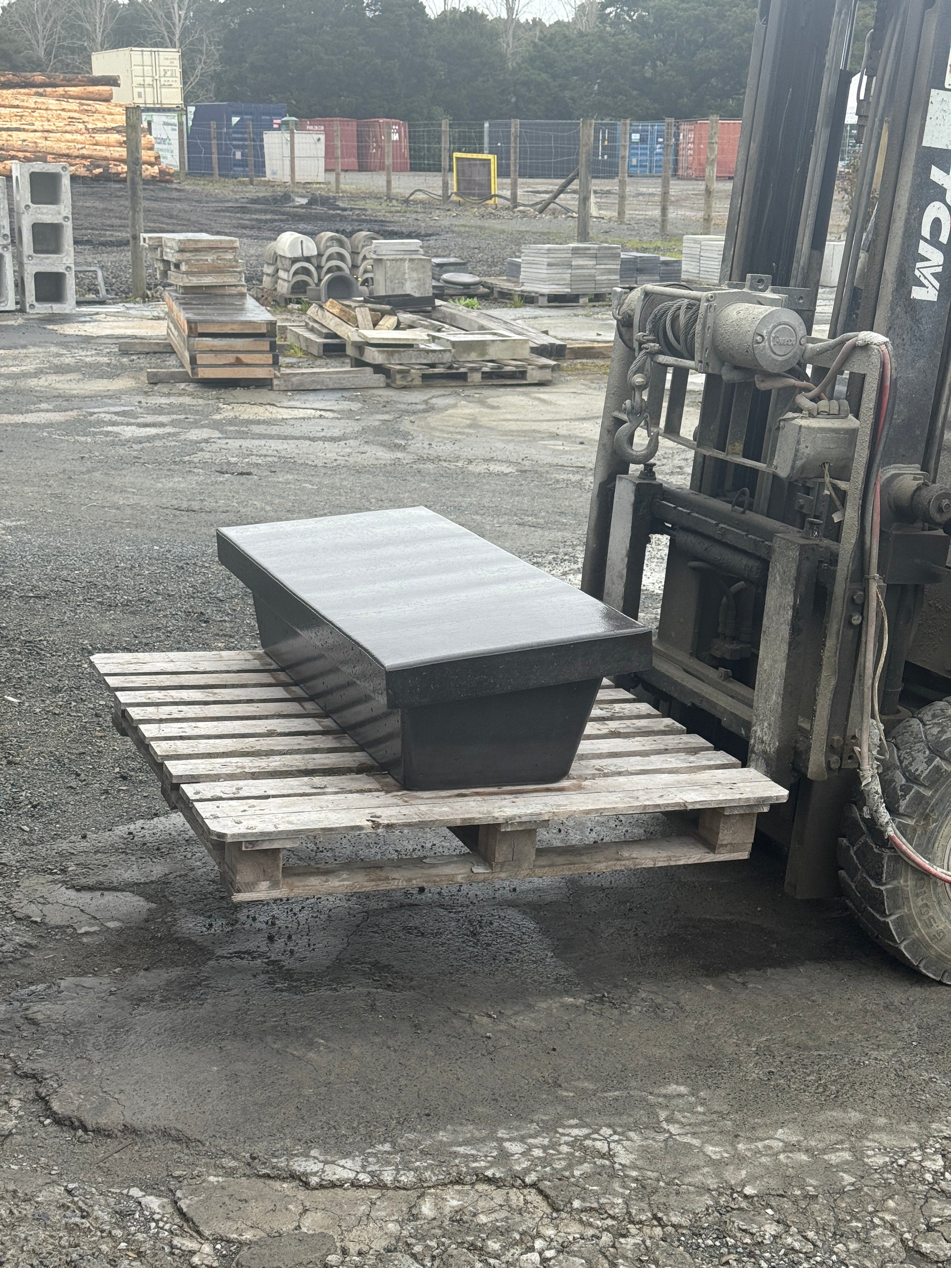 It is built of strong, resilient concrete with a glaze sealer which preserves the finish. A drain pipe is cast into the concrete to drain out any unwanted water.